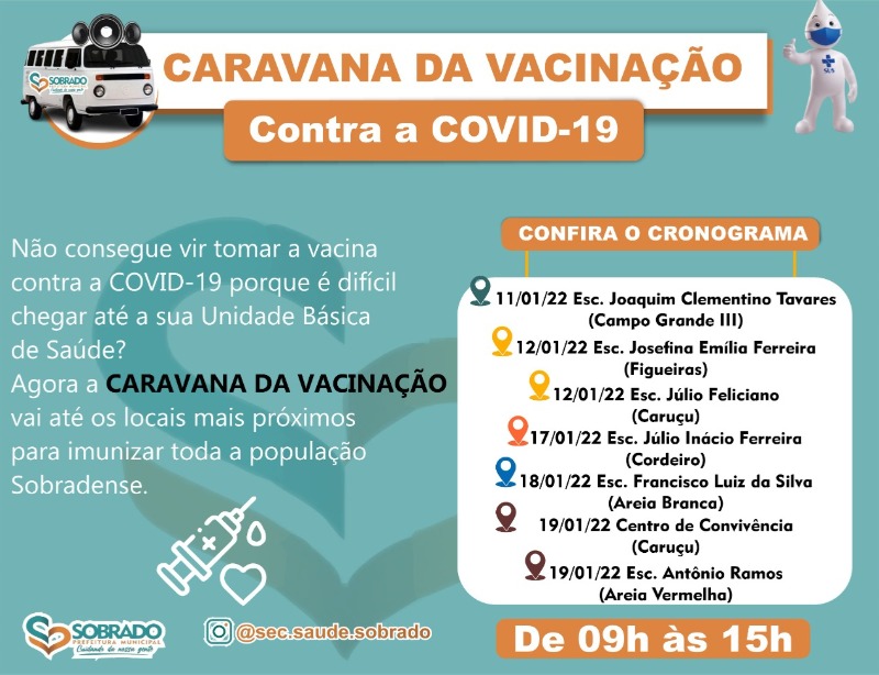A Caravana da Vacinação começa a sua peregrinação nesta terça-feira, dia 11 de Janeiro, ficando localizada na escola Joaquim Clementino Tavares na comunidade Campo Grande III.