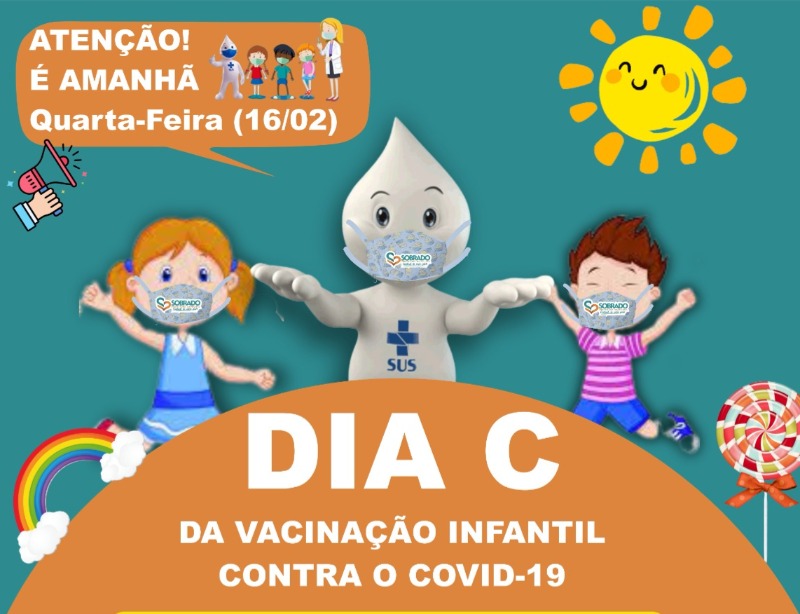 A Prefeitura de Sobrado, através da Secretaria de Saúde, vai realizar na quarta-feira (16) o 'Dia C' de vacinação infantil contra a Covid-19.