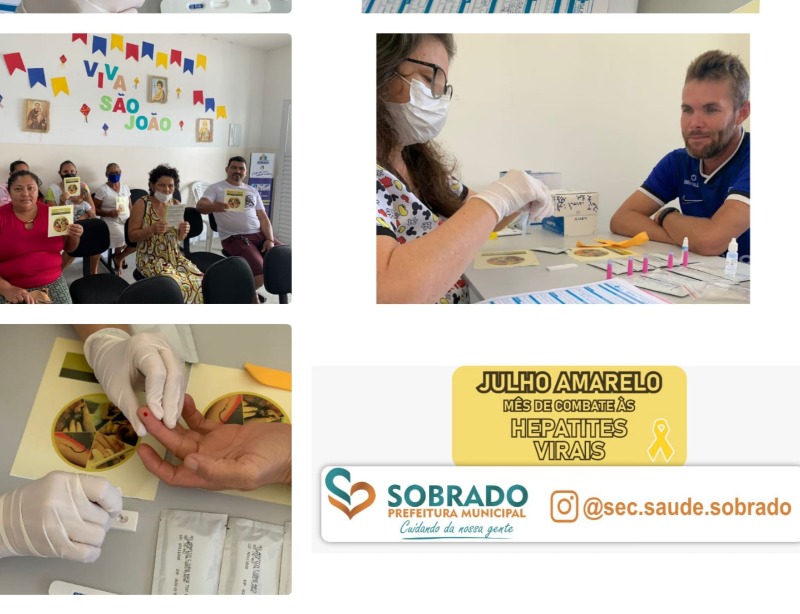 Em alusão ao Julho Amarelo, “Mês de luta contra as Hepatites Virais”, a Secretaria Municipal de Saúde do município de Sobrado, realizou durante toda esta semana palestras; orientações; testagem rápida para detecção das Hepatites B e C e vacinação contra o vírus.