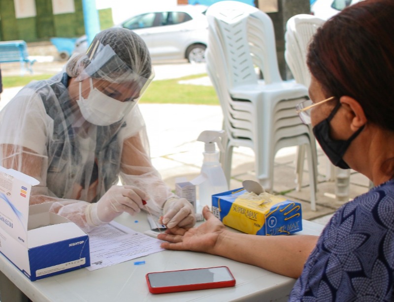 O mutirão de testagem contou com a presença da polícia militar, da operação previna-se. A presença do prefeito Olinaldo Martins da Silva que falou da importância na detecção precoce da COVID 19, nesse contexto de Pandemia.