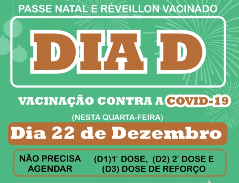 A secretaria de Saúde do município de Sobrado realiza nesta quarta-feira, dia 22 de Dezembro, mais uma dia D de vacinação contra a Covid-19.