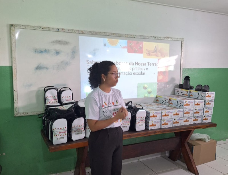 Com o tema “Saberes e sabores da nossa terra: cultura alimentar, boas práticas e cuidado na alimentação escolar”, os participantes tiveram a oportunidade de aprimorar os seus conhecimentos sobre segurança alimentar e esclarecer dúvidas com a coordenadora da alimentação escolar, Eliete Amorim, e a nutricionista Samara Andrade.