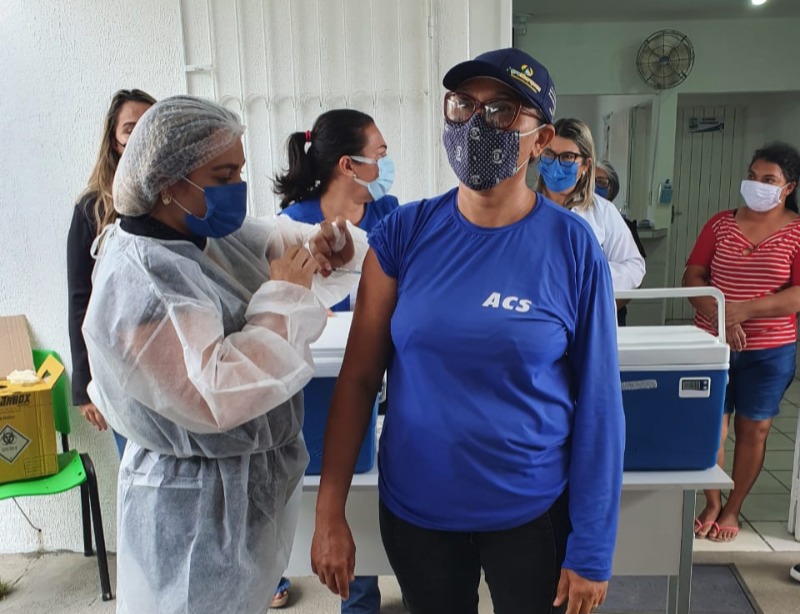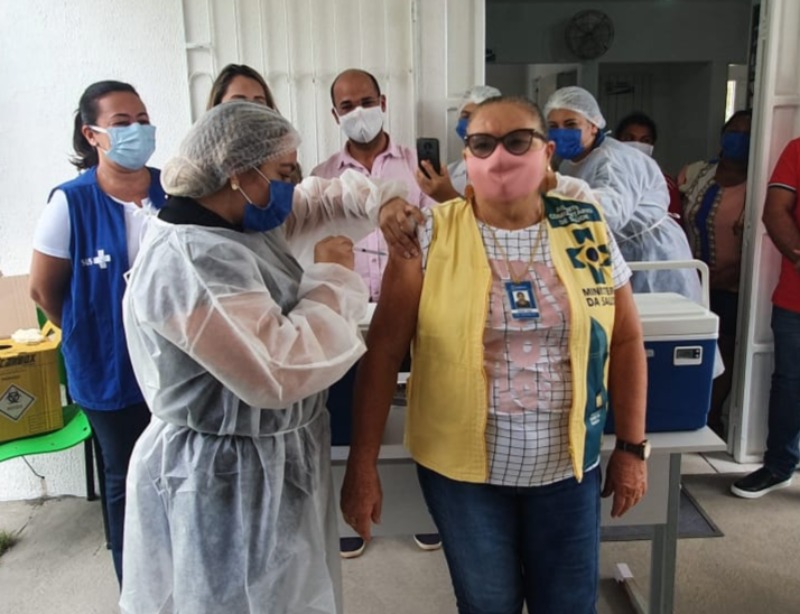 Começou nesta quinta-feira (21) a campanha de imunização contra Covid-19 em Sobrado. A aplicação das primeiras doses foi iniciada logo após a chegada da vacina CoronaVac, produzida pelo Instituto Butantan em parceria com a farmacêutica chinesa Sinovac.O início da imunização aconteceu pelos profissionais da saúde que atuam na Unidade Básica de Saúde (UBS II) na localidade do Campo Grande. O momento foi acompanhado pelo prefeito de Sobrado, Léo Martins, o vice-prefeito Joilson Pereira, além da secretária de Saúde, Cláudia Germana. A primeira profissional a receber a dose da vacina foi Maria José, Agente Comunitária de Saúde (AGS).