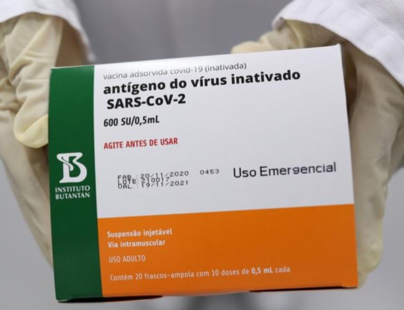 Foram recebidas 390 doses da vacina Coronavac, produzida no Brasil pelo Instituto Butantan para utilização como segunda dose no público-alvo formado por pessoas com idades entre 60 e 79 anos e trabalhadores da saúde.