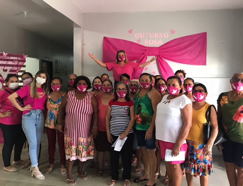 O evento também contou com atendimento médico, de enfermagem, assistente social, psicóloga, nutricionista, fisioterapeuta e cirurgião dentista voltado ao público feminino. Entrega de lembrancinhas e máscaras personalizadas com o tema do Outubro Rosa.