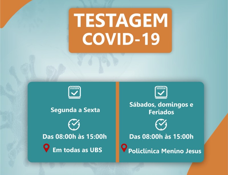 Além da disponibilidade das doses para o público infantil, a Secretaria de Saúde informa que o serviço de testagem segue funcionando com atendimento ao público de segunda a sexta, das 8h às 15h, em todas as Unidades de Saúde, e aos sábados domingos e feriados, na Policlínica Menino Jesus. O atendimento no local para testagem acontece das 8h às 15h.