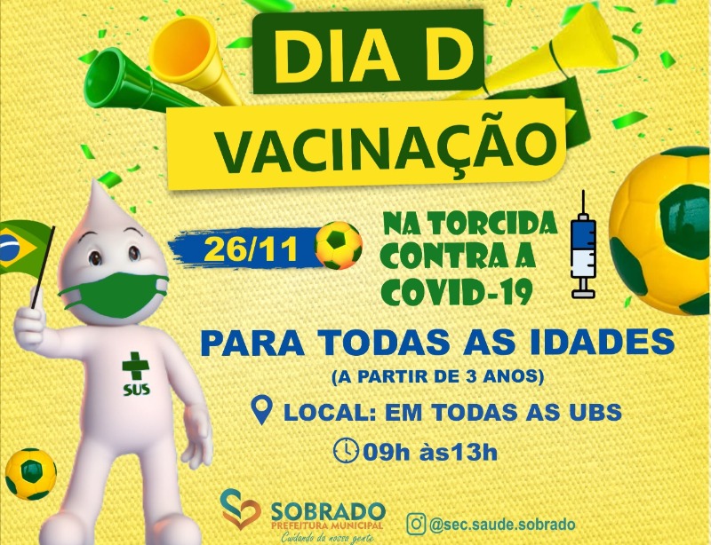Garantir a ampliação da cobertura vacinal na população e reduzir os riscos de transmissão da Covid-19. Esse é o objetivo da Prefeitura de Sobrado, através da Secretaria de Saúde, que irá promover neste sábado (26) o Dia D de imunização.