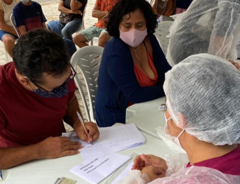 "Recebemos o quantitativo de 610 doses do Estado na tarde desta sexta feira(16/07), e logo foi organizado junto a equipe toda uma logística de organização de fluxos respeitando os protocolos sanitários de segurança para que a vacinação ocorresse de forma tranquila, como foi, sem aglomerações e vacinando todos na faixa etária de mais de 40 anos que alí se encontravam". disse a secretária de Saúde, Gilvania Dias.